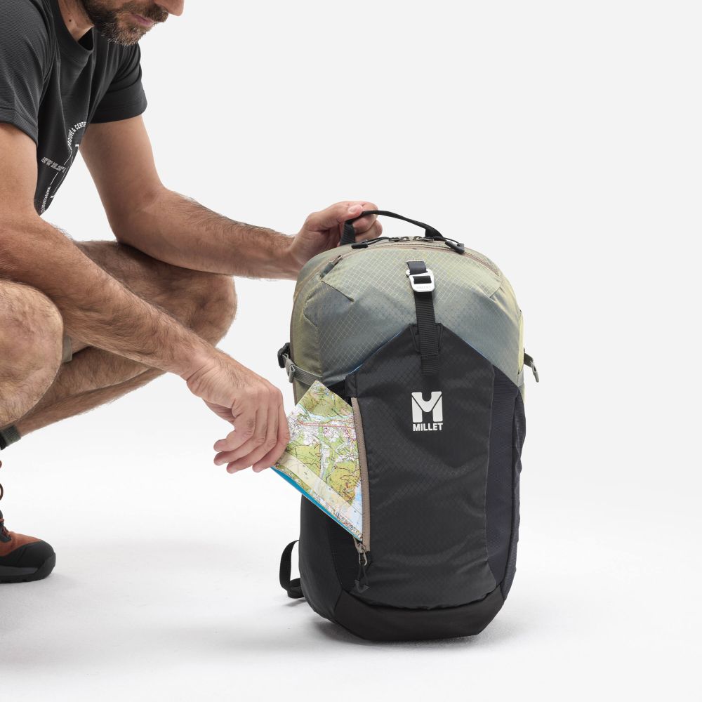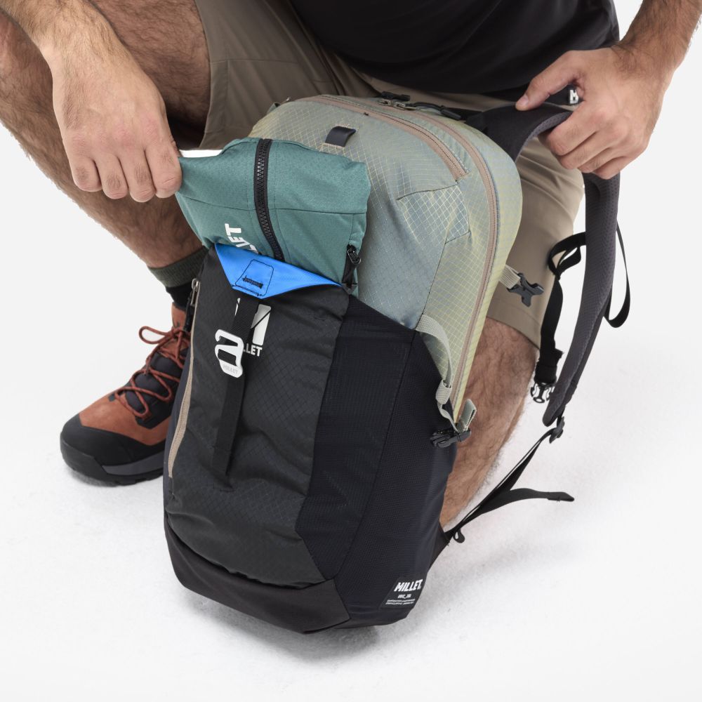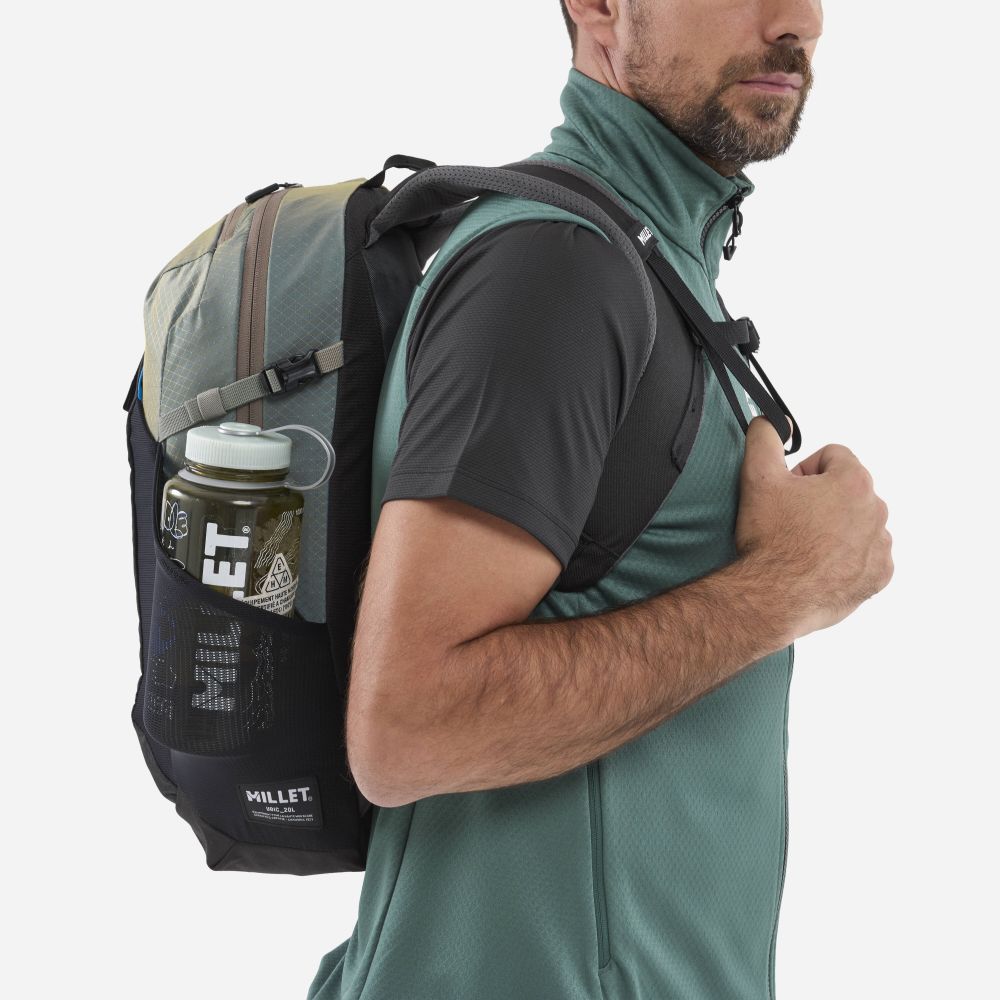 Ľahký a praktický batoh UBIC 20 od značky Millet je ideálny na krátke výlety do prírody aj každodenné použitie. Vďaka zipsovému vstupu ľahko uložíte hydrovak alebo notebook do špeciálnej priehradky v hlavnom priestore. Kľúče a drobnosti bezpečne uschováte v závesenom vrecku alebo v prednom zipsovom vrecku, zatiaľ čo bočné sieťované vrecko pojme fľašu s vodou či trekové palice podľa vašich potrieb. Ak potrebujete viac priestoru, flexibilné sieťované predné vrecko typické pre rad UBIC vám poskytne ďalší úložný priestor.