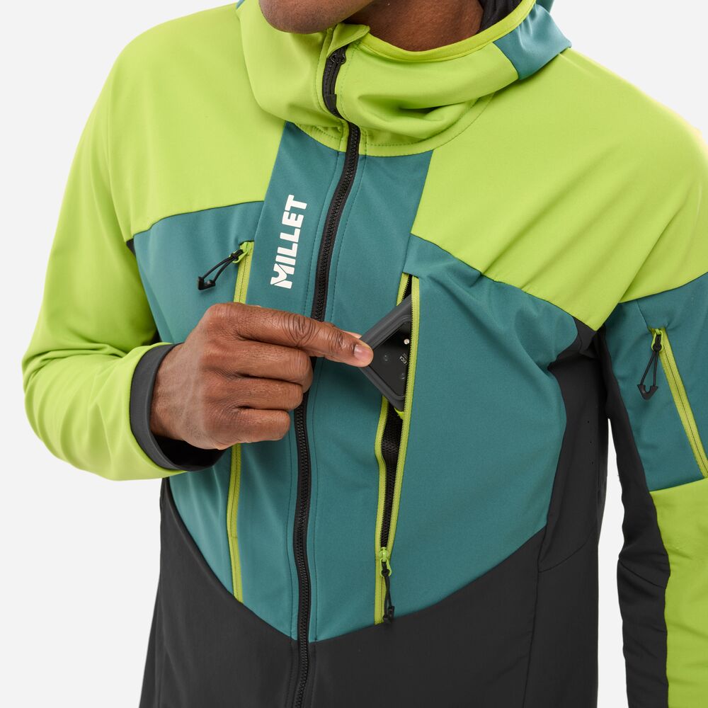 Pánska lyžiarska bunda Millet White Shield spĺňa to, čo sľubuje. Aktívny strih, vetruodolná a vodoodpudivá hybridná štruktúra na prednej a hornej časti tela a priedušná na spodnej a zadnej časti. Odvod vlhkosti je optimalizovaný perforáciami pod pažami. Pohyby sú dostatočne plynulé vďaka strečovému a ľahkému materiálu. Bunda má 2 veľké náprsné vrecká.