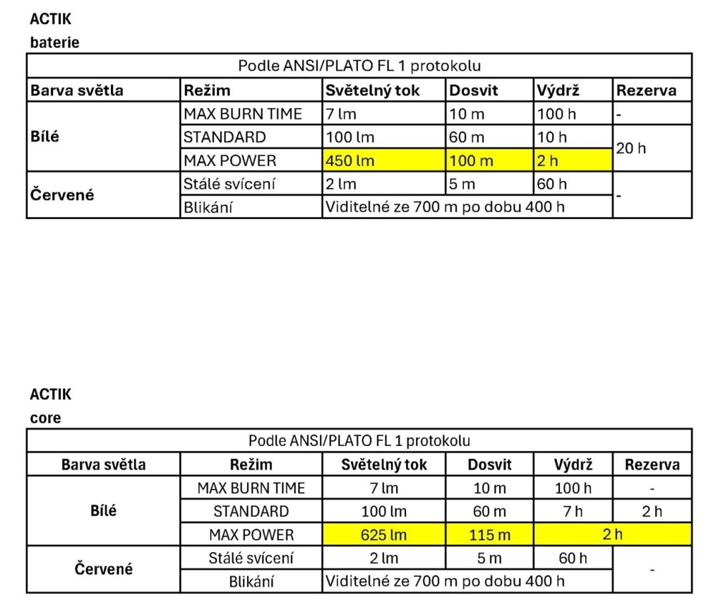 - tri intenzity číreho svetla: MAX. DOBA SVIETENIA, ŠTANDARDNÉ (lepšie vyváženie výkonu a výdrže) a MAX. VÝKON