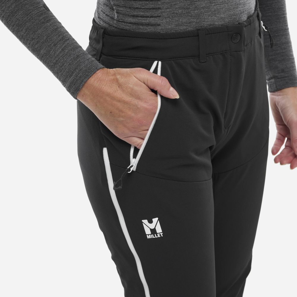 Dámske technické nohavice Millet LD RUTOR XCS vhodné na skialp aj bežky. Ich vodoodpudivý strečový materiál Bi-FaceTM zaisťuje dobrú izoláciu a zároveň zostávajú priedušné. Počas aktivity je možné rozopnúť prídavné ventilačné zipsy na stehnách. Predtvarované kolená a rozkrokový panel nám umožňujú predĺžiť pohyb s úplnou ľahkosťou. Otváracie zipsy a gamaše na suchý zips nám uľahčujú obúvanie topánok. V spodnej časti nohavíc sú výstuže ktoré zvyšujú ich odolnosť. Ideálne na skialp, bežky ale aj na všetky zimné vysokohorské aktivity.