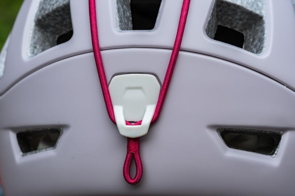 - tenká pracka na podbradnom pásiku sa zaistí na mieste, aby sa neposúvala a nedošlo k nechcenému uvoľneniu popruhu