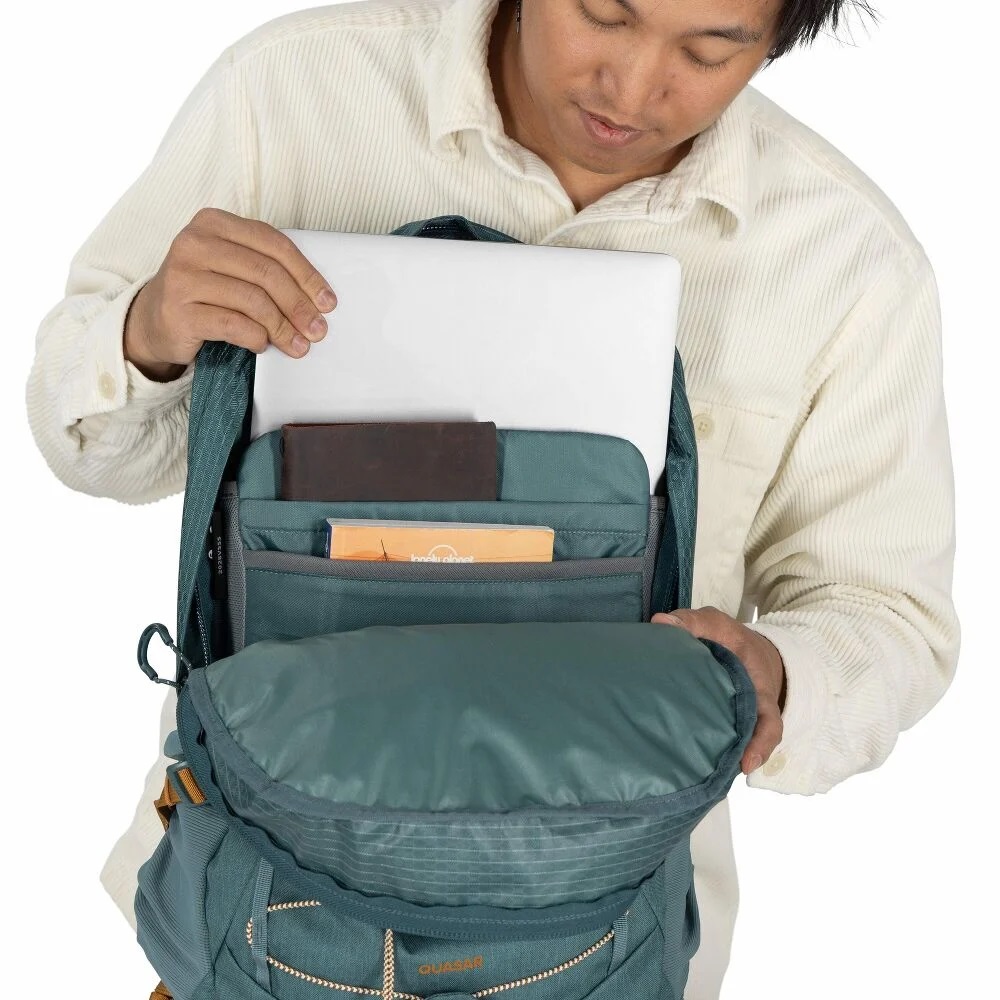 Turistický batoh Osprey Quasar 26 je perfektnou voľbou na horskú turistiku, cestovanie aj každodenné nosenie v meste. Tento všestranný a odolný batoh ponúka perfektnú organizáciu vašich vecí a pohodlia pri nosení. Jedinečný komfort zaistí chrbtový panel AirScape™, ktorý je vybavený penovými výstupkami, takže je pohodlný a skvele sedí. Panel potom dopĺňajú pohodlné a priedušné ramenné popruhy BioStretch, ktoré sú doplnené o hrudný pás s píšťalkou a bedrový popruh s prackou.