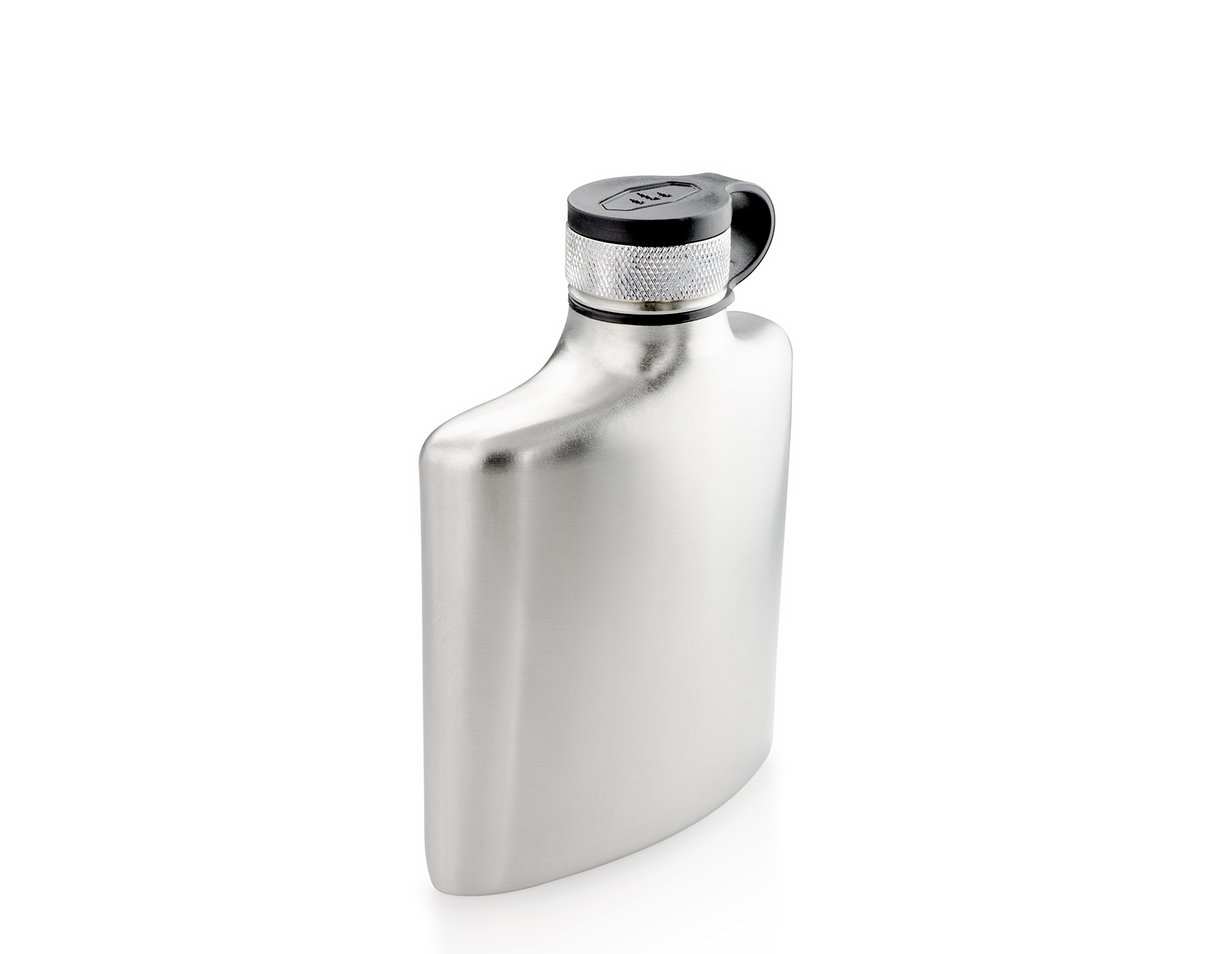 Nerezová ploskačka s moderným dizajnom, ktorá sa zmestí do zadnej kapsy nohavíc.