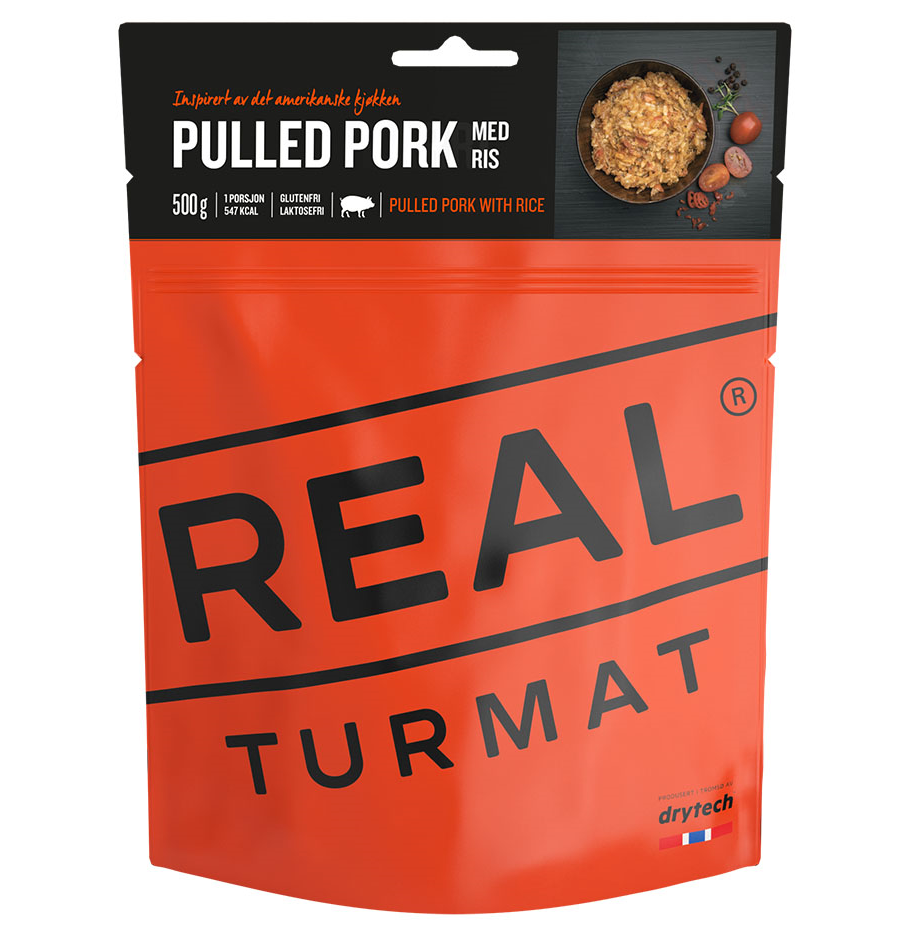 Real Turmat trhané bravčové mäso s ryžou (bez lepku a laktózy) je dehydratovaná strava, ktorá sa výborne hodí na dlhé expedície alebo na krátke výlety. Real Turmat vyrába svoje produkty iba z čerstvých a kvalitných nórskych surovín, ktoré sú starostlivo upravované počas celého dehydratačného procesu. Jej prednosťou je nízka váha, jednoduchá príprava a výborná chuť. Značka Real Turmat bola vyhodnotená odborníkmi ako najchutnejšia expedičná strava, u ktorej nie je vôbec poznať, že sa jedná o dehydrované jedlá. Vďaka tomu sa aj v najodľahlejších končinách budete cítiť ako keby ste jedli poctivú domácu stravu.