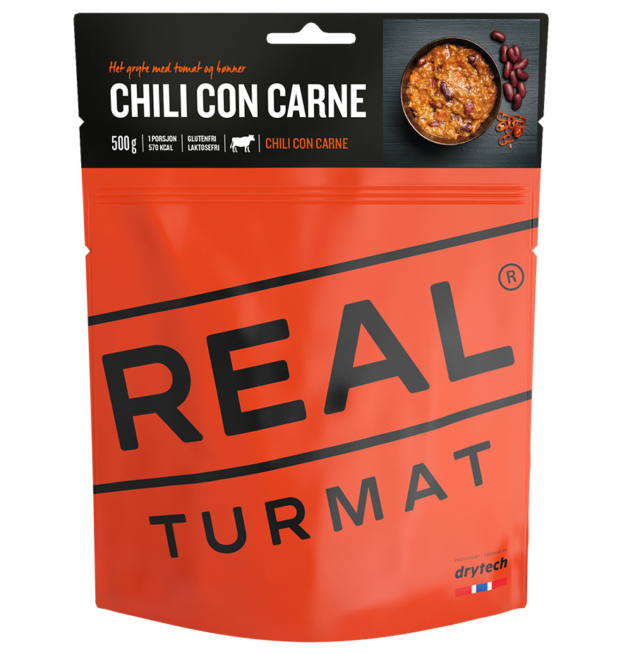 Dehydrovaná expedičná strava s vynikajúcou chuťou. Jemne pikantné Chilli con Carne, mexická fazuľa s hovädzím mäsom. Real Turmat je elitou medzi dehydrovaným jedlom a spolu s jednoduchou prípravou prináša skutočne lahodné chute na tie najextrémnejšie miesta na svete.