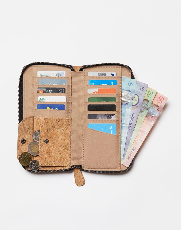 50% korok, 40% bavlna, 10% lepidlo, 100% polyester RFID blokátor