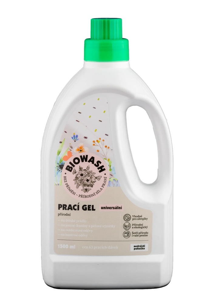 Univerzálny prírodný prací gel vyrobený z mydlových orechov. Šetrí prírodu a peniaze, prírodný, ekologický, vhodný aj pre alergikov. Ekologický prírodný prací prostriedok na všetky druhy oblečenia. Spoľahlivo odstraňuje nečistoty a zároveň plne zachováva funkčnosť všetkých materiálov. Nezanecháva v bielizni zvyšky, ktoré dráždia pokožku, preto je vhodný aj pre alergikov.