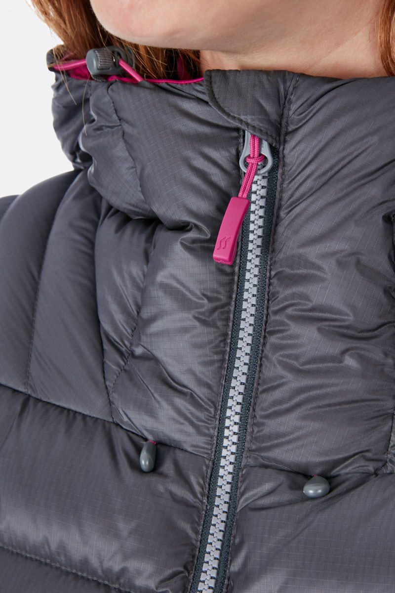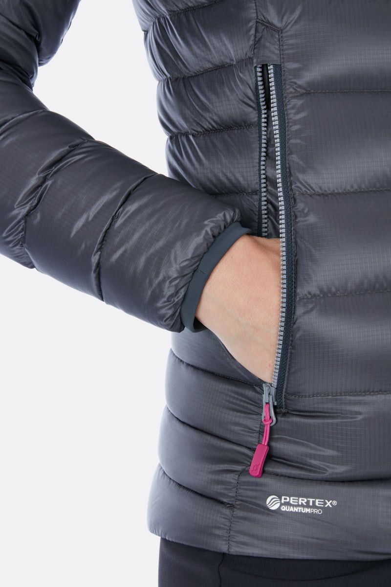 Dámska stredne zateplená páperová technická bunda s vodeodolným povrchom Pertex® , navrhnutá na celoročné lezenie a použitie v horách. Je navrhnutá na lezenie v chladnom počasí a na použitie v horách, avšak s vysokou úrovňou pohodlia a zabalenia je vhodná na každodenné použitie v zime.