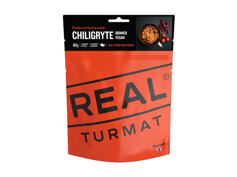 Real Turmat Chili s fazuľami –vegan je dehydratovaná strava, ktorá sa výborne hodí na dlhé expedície alebo na krátke výlety. Real Turmat vyrába svoje produkty iba z čerstvých a kvalitných nórskych surovín, ktoré sú starostlivo upravované počas celého dehydratačného procesu. Jej prednosťou je nízka váha, jednoduchá príprava a výborná chuť. Značka Real Turmat bola vyhodnotená odborníkmi ako najchutnejšia expedičná strava, u ktorej nie je vôbec poznať, že sa jedná o dehydrované jedlá. Vďaka tomu sa aj v najodľahlejších končinách budete cítiť ako keby ste jedli poctivú domácu stravu.