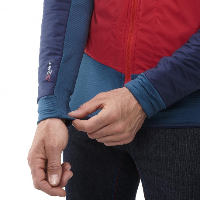 Pánska bunda Millet Trilogy Hybrid Alpha Hoodie M je vyrobená z extrémne ľahkých tkanín Airtastic, ktoré sú odolné voči oderu. V prednej časti a vrchnej časti rukávoch sa nachádza syntetická izolácia Polartec Alpha, ktorá účinne reguluje telesnú teplotu. Vrchná časť je z vetruodolného materiálu polyamid. Elastický zadný diel a bočné panely poskytujú výbornú priedušnosť a dokonalú voľnosť pri pohybe.