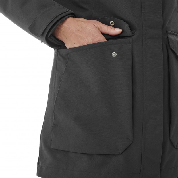 Moderný dámsky kabát LAPLAND 3v1 W. Skladá sa z nepremokavej bundy jednoduchých línií a vnútornej bundy vyplnenej teplým vatelínom s prešívaním v štýle „páperovej bundy“. Vďaka svojej odolnej textúre bude perfektný na každodenné použitie. Pri výrobe tohto produktu sa používajú recyklované materiály.