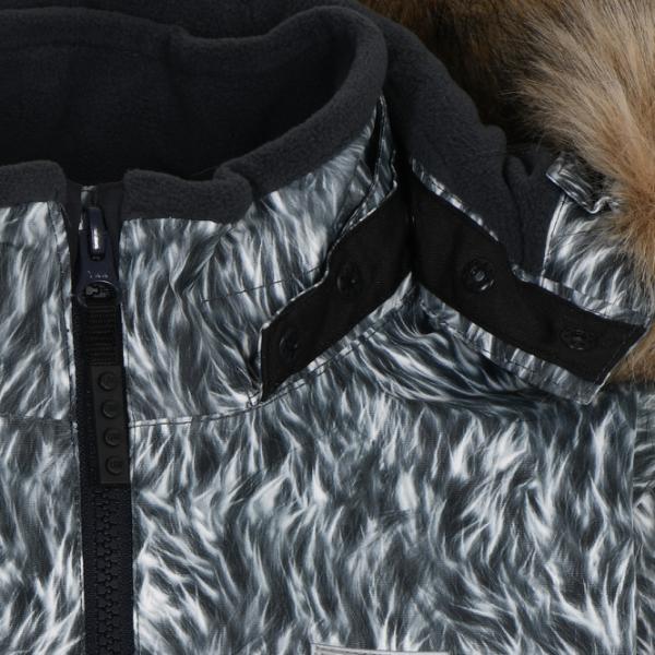 Bunda je 100% vetruodolná a vodeodolná vďaka prelepeným švom. Je vyrobená z odolného materiálu s vodným stĺpcom 12 000 mm. Odopínateľná kapucňa je pripevnená na gombíky, ktoré je možné skryť, ak je kapucňa oddelená od bundy. S pohodlným flísom z vnútornej strany rukávov, na golieri, vrecku a kapucni.